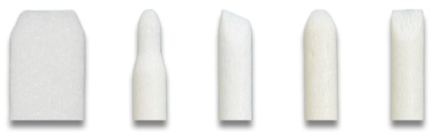 Loosely packed fibers give a nib a coarse feel and appearance. Fluid will flow quickly through this kind of nib. Tightly packed fibers will make the nib look almost like a piece of smooth plastic. This type of nib better controls the flow of fluid for more accurate and measured dispensing.