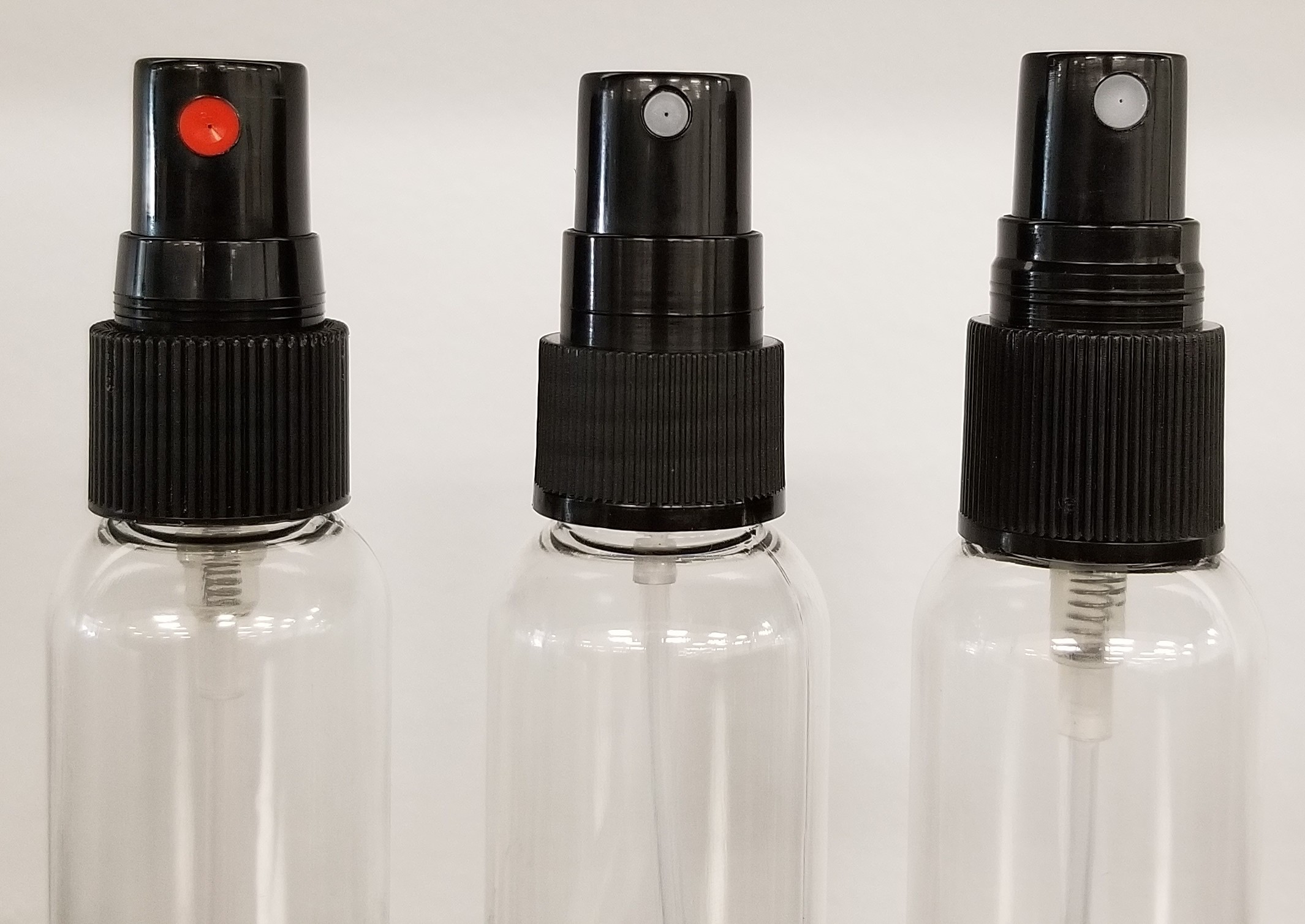 Photo caption: Take a look at that middle fine mist sprayer; it is the FLOMIST fine mist sprayer. See something different? The engine hanging below the bottom of the closure is on average 63% shorter and 47% smaller in diameter than the other two sprayers. What they all have in common is that they dispense 190ml per spray.